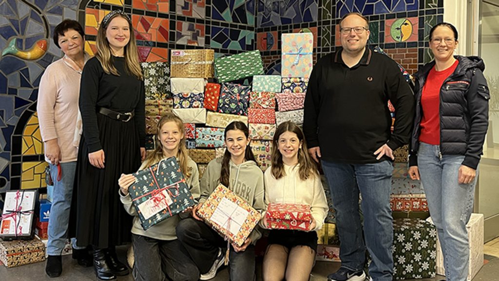 Die Schülerinnen und Schüler des CVG packten bis zu diesem Termin äußerst fleißig, sodass Frau Neubert beachtliche 100 Päckchen für den Konvoi bei uns abholen konnte.