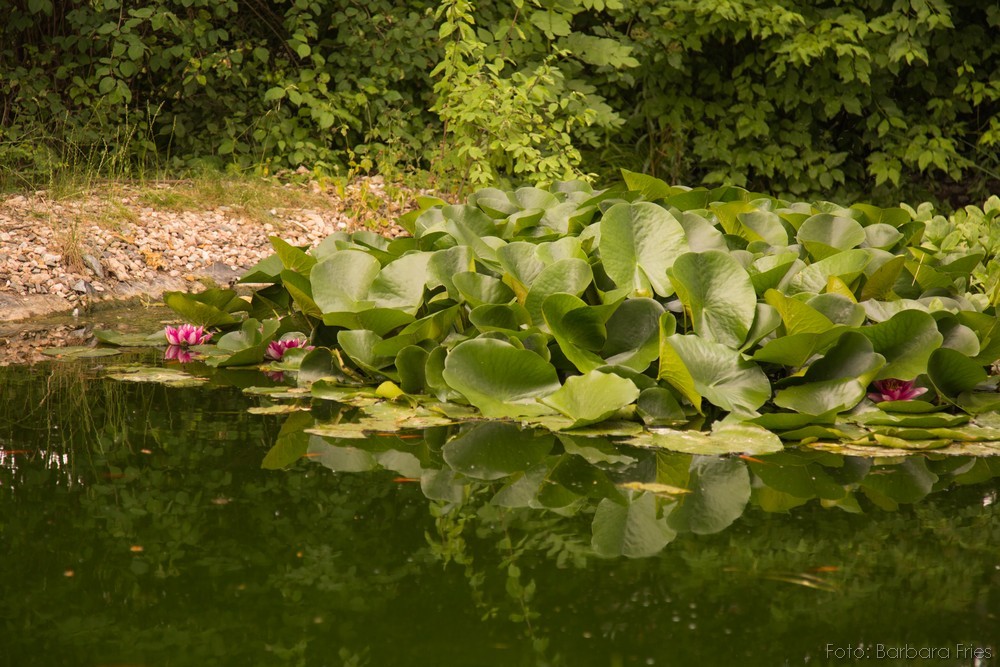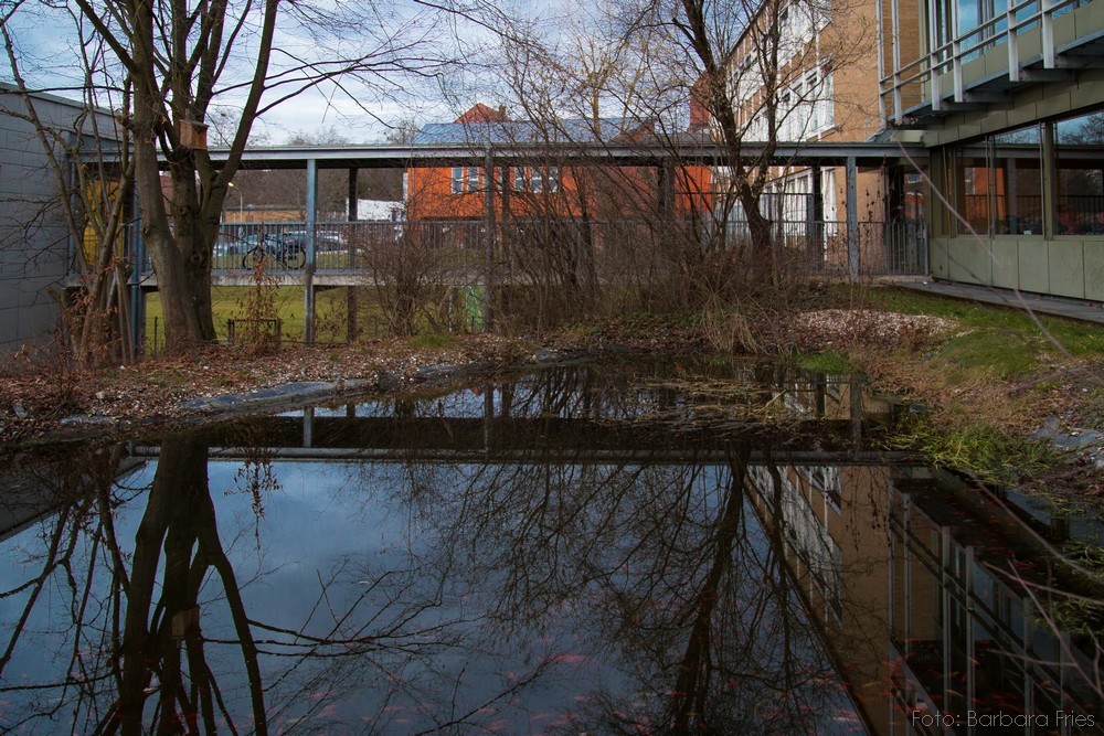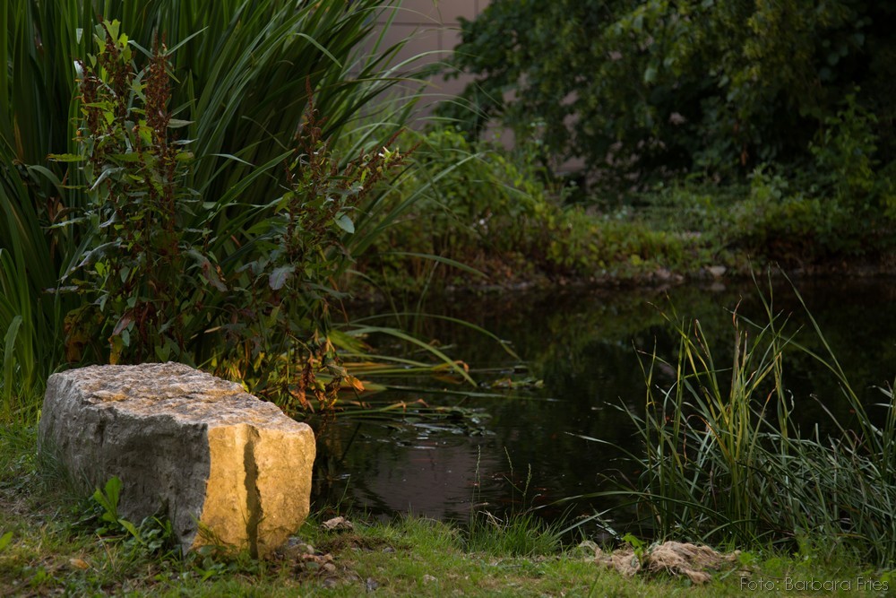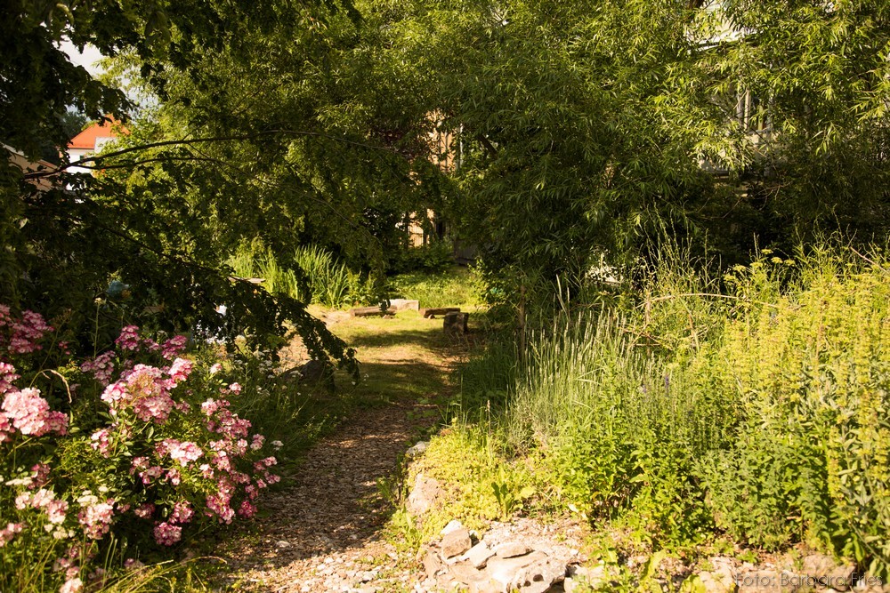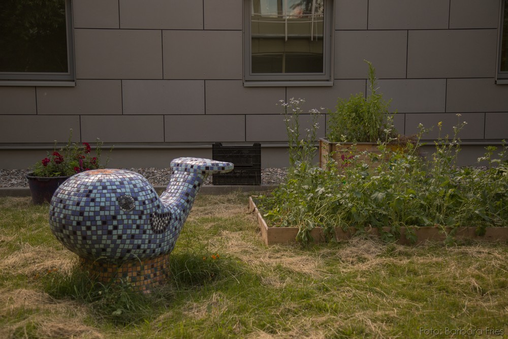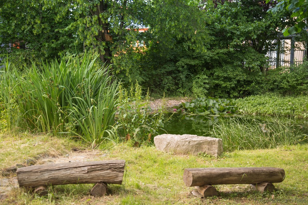 Ein Highlight ist auch der große Schulgarten mit Naschbeeten, Kräutermond, Sitz- und Entspannungsbereichen und Teich – unser Entenpärchen, das hier jedes Jahr sein Sommerquartier bezieht, gehört eigentlich schon mit zur Schulfamilie.