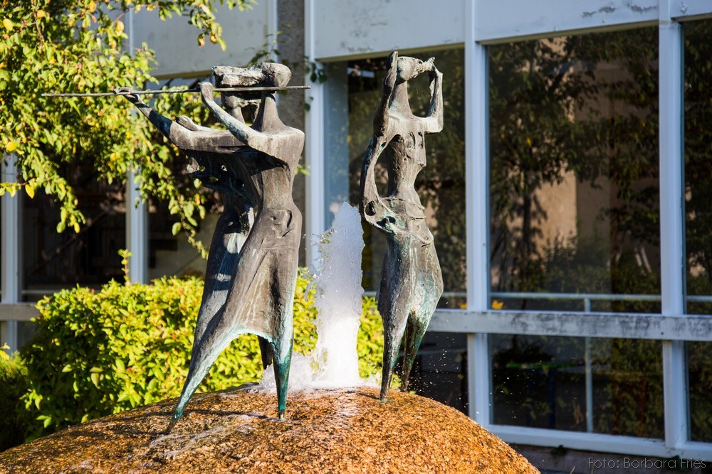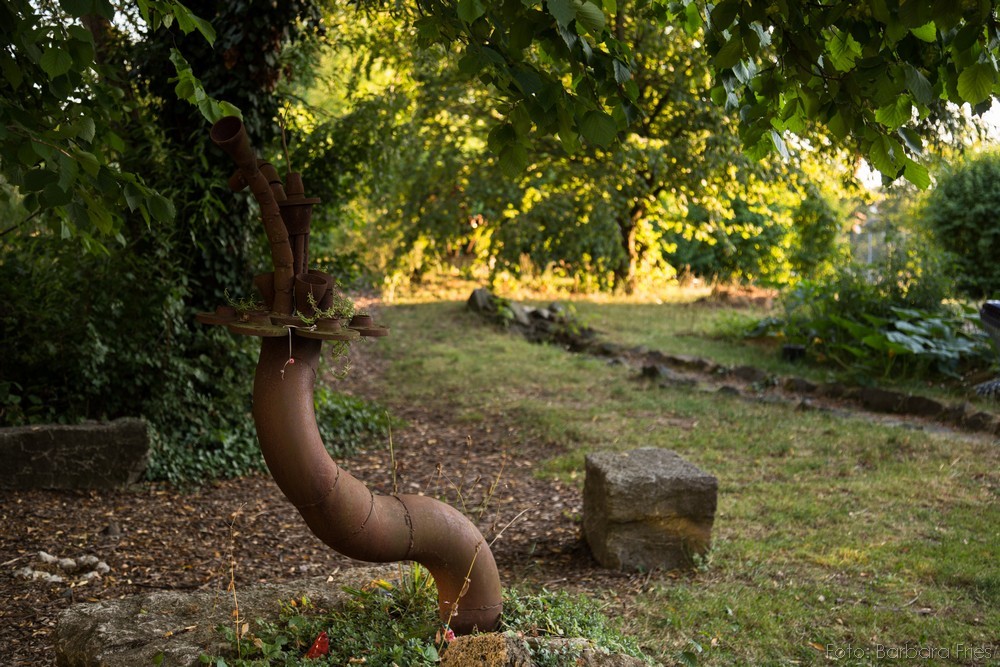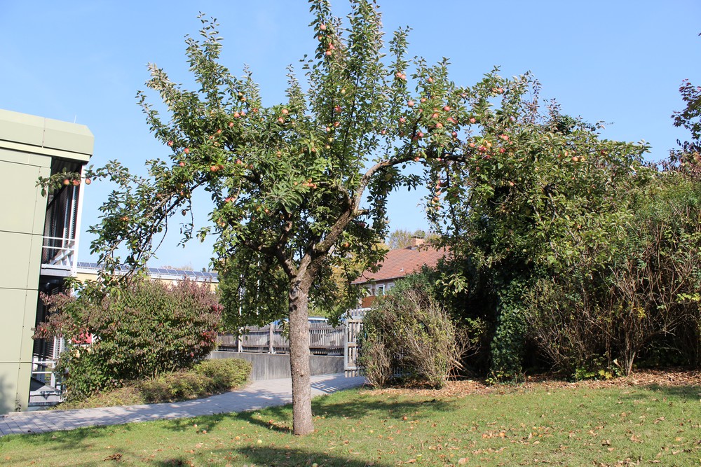Bei gutem Wetter zieht es unsere Schülerinnen und Schüler ins Freie in unser riesiges Außengelände mit Skulpturengarten, grünem Klassenzimmer, Außenterrassen für das Mittagessen im Sommer und Obstbaumwiese.