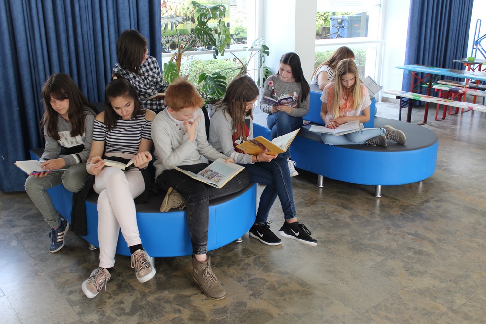 Wer die Pausen lieber ebenfalls für schulische Dinge nutzen möchte, kommt auch auf seine Kosten: Unsere großzügigen Gemeinschaftsbereiche für alle bieten Arbeitsmöglichkeiten an Computern oder Raum zum Lesen und Lernen in der Bibliothek.